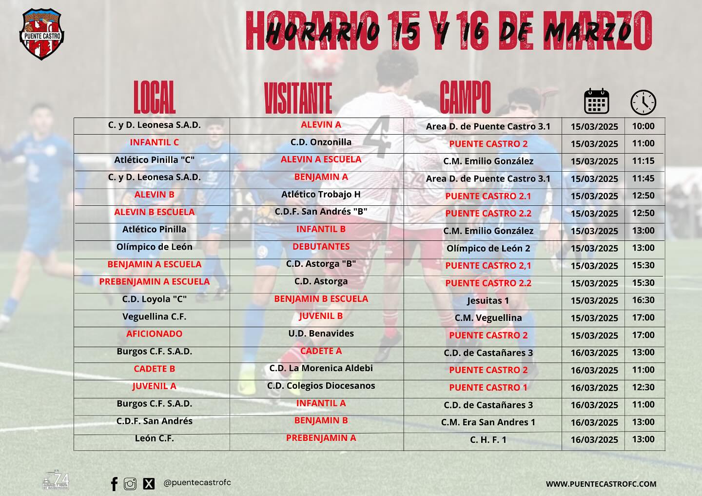 El Puente Castro FC encara un fin de semana con encuentros determinantes en todas sus categorías. ¡Mucha suerte a todos los equipos!